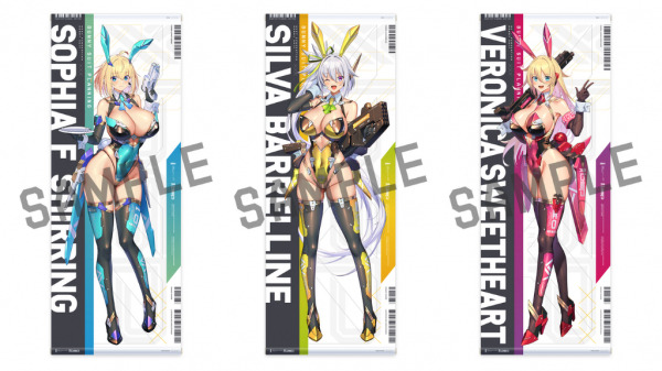 「バニースーツ プランニング POP UP STORE in あみあみ秋葉原フィギュアタワー店」のために新規に描き下ろされたバニーエージェント衣装の3人がほぼ等身大タペストリーになりました。