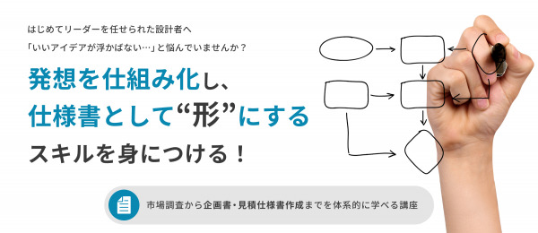 こうした状況では、顧客ニーズ・自社技術・競合状況を踏まえた論理的思考や、アイデアを仕様として文書化するスキルが求められています。