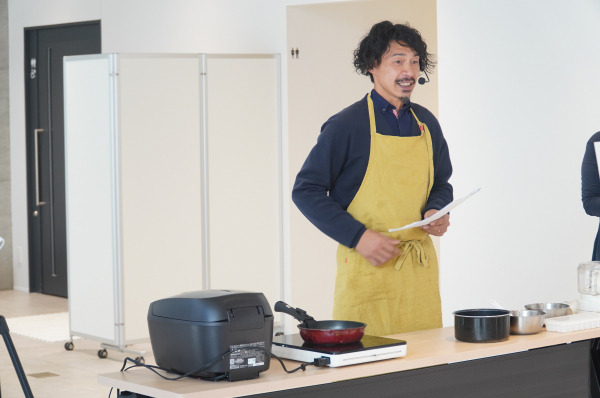 後半は、「パパと一緒に離乳食づくり」をテーマに、養蜂・農業・介護福祉士であり、元飲食店経営者でもある高橋裕次郎先生に、デモンストレーション形式で講義を行っていただきました。