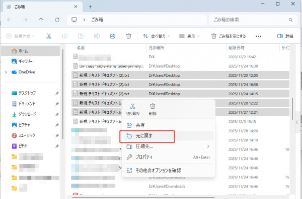 3 - 対象ファイルを右クリック → 「元に戻す」を選択