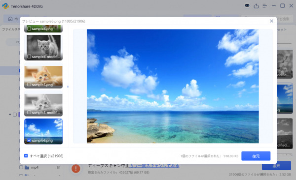 Tenorshare 4DDiGは、高い復元率を謳うデータ復元ソフトウェアの一つです。この種のソフトウェアは、ディスク上に残っている削除されたファイルの断片を読み取り、再構築することで復元を試みます。
