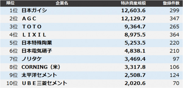 詳細については、ランキングデータ「窯業 特許資産規模ランキング2025」にてご覧いただけます。