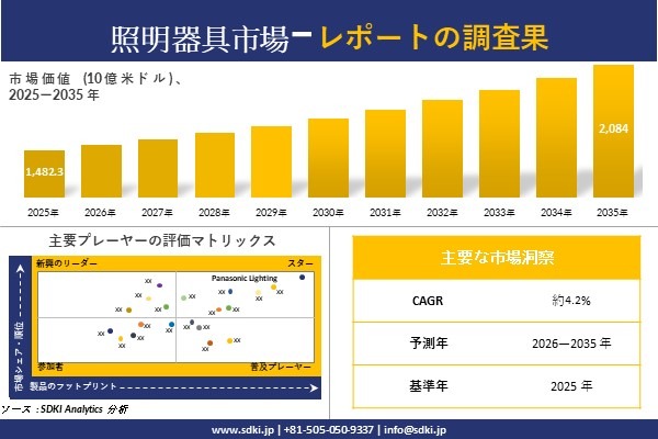 照明器具に関する詳細な市場調査報告書は以下のリンクから入手できます: https://www.sdki.jp/reports/lighting-fixtures-market/590641927