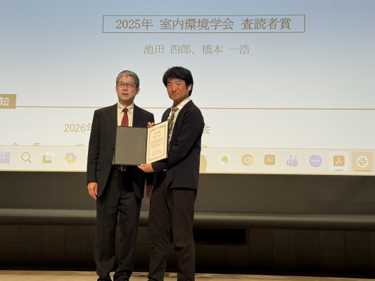 今回受賞した橋本一浩主任研究員は、住環境の微生物への研究実績と高い専門性を持つため、室内環境学会誌に掲載された他の研究者の論文審査(査読)をこれまでに数多く引き受け、その質や信頼性を保証してきました。その功績と的確で建設的なコメントや迅速な対応を行ったことが評価され、「査読者賞」を授与されました。