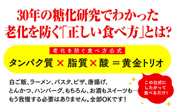 ・【老化を防ぐ食べ方公式】タンパク質 × 脂質 × 酸 = 黄金トリオ