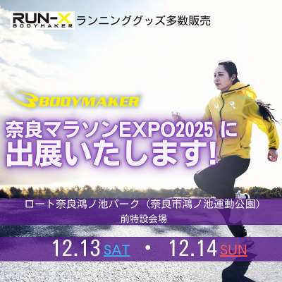 2025年12月13日(土)~12月14日(日)の2日間、ロートフィールド奈良(奈良市鴻ノ池陸上競技場)前特設会場で開催される奈良マラソンEXPO2025は、様々な企業がイベントや展示即売会などが行われるなかで、BODYMAKERはブース出展し、ランニングバッグやランニングキャップ等、マラソン用のスポーツアイテムを販売することとなりました。 ぜひ皆様お誘い合わせの上、お越し下さい。