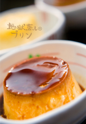 ・「地獄蒸し」とは、大分県別府市で有名な調理法で、温泉の噴気(高温の蒸気)を利用して食材を蒸し上げる伝統的な方法である。「地獄蒸し(R)プリン」は、この温泉蒸気を使ってプリンを蒸し上げたスイーツ。高温の蒸気で一気に加熱するため、なめらかで濃厚な食感に仕上がるのが特徴である。蒸気で仕上げることで、香ばしいカラメルとの相性が際立つ。 温泉地ならではの「地獄蒸し体験」と一緒に楽しめる点が観光の魅力になっている。「地獄蒸し(R)プリン」は単なるスイーツではなく、温泉文化と観光体験を結びつけた商品で温泉蒸気で蒸すという体験そのものが珍しく、観光客にとって「ここでしか食べられない特別感」がある。「地獄蒸し工房」では、野菜や海鮮を蒸す体験とセットで楽しめるため、プリンはその締めくくりの甘味として人気である。(日野 隆生)