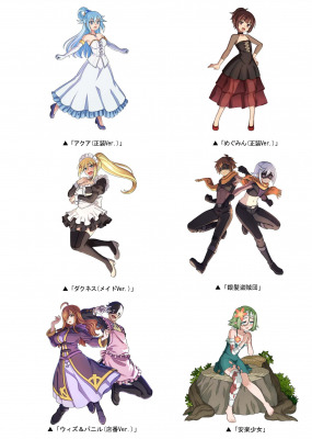「アクア(正装Ver.)」「めぐみん(正装Ver.)」「ダクネス(メイドVer.)」「銀髪盗賊団「ウィズ&バニル(店番Ver.)」「安楽少女」が登場!素晴らしい仲間たちと一緒にドラポの世界を冒険しましょう!