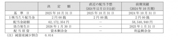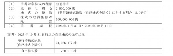 2025年10月31日現在のマーチャント社資本準備金 1,145,331,108円のうち1,000,000,000円を取崩します。資本準備金取崩額1,000,000,000円は、その他資本剰余金に振り替える予定です。