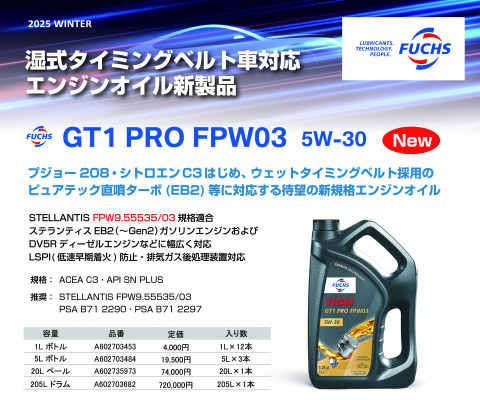 このオイルは、ステランティス社が湿式タイミングベルト採用車向けに新たに制定した規格【STELLANTIS FPW9.55535/03】に適合するエンジンオイルで、プジョー208・2008・308やシトロエンC3やDS3など、EB2ピュアテック直噴ターボエンジン(~Gen.2)搭載車に対応します。