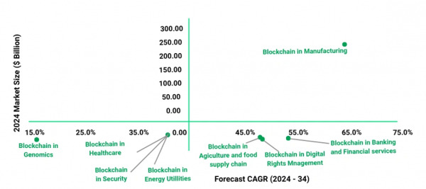 ブロックチェーンは製造、金融、農業、エネルギー、医療など幅広い産業に導入されている。既に定着している分野もあれば、新たなユースケースの出現で急速に発展する分野もある。