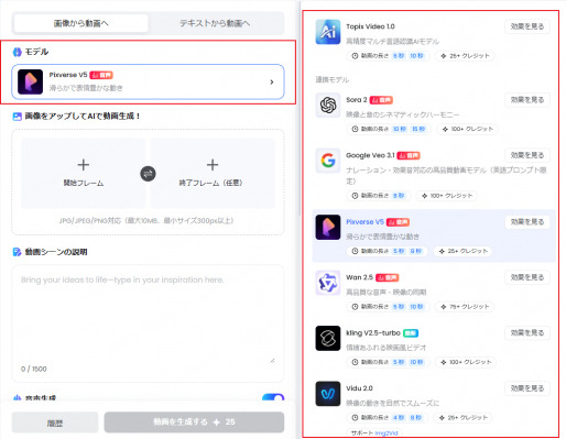 テキストから動画へ:https://jp.topmediai.com/app/image-to-video/