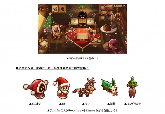 “ホリデーアップデート”を記念し、アソビズム公式Discordサーバーでは期間限定のコミュニティ企画を開催中です。バトル中にヒーローたちが共闘している場面のスクリーンショットを専用チャンネルへ投稿いただいた方には、到達したステージに応じた限定ロールをもれなく付与いたします。さらに、コンベア等の工場設備を活用したクリスマスアート作品を投稿いただいた方には、別途“クリスマス工場アート”投稿者向けの限定ロールもプレゼントいたします。