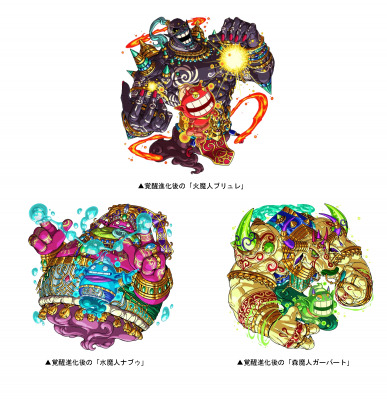 12月19日(金)より、チャレンジダンジョン「魔人覚醒」を開催いたします。本ダンジョンでは、覚醒した「火魔人ブリュレ」「水魔人ナブゥ」「森魔人ガーバート」がボスモンスターとして日替わりで登場します。ダンジョンで覚醒進化素材を手に入れ、モンスターを覚醒させましょう!