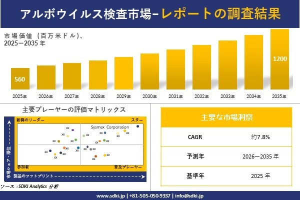 アルボウイルス検査市場に関する詳細な市場調査報告書は以下のリンクから入手できます: https://www.sdki.jp/reports/arbovirus-testing-market/89303