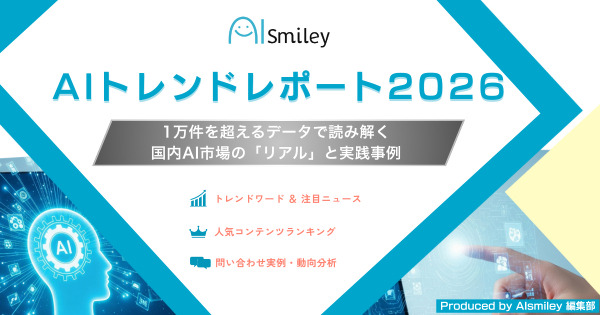 国内最大級のAIポータルメディア「AIsmiley」を運営する株式会社アイスマイリー(東京都渋谷区、代表取締役:板羽 晃司)は、2025年度のAI注目トレンドと企業の関心動向を整理した資料「AIトレンドレポート2026― 1万件を超えるデータで読み解く国内AI市場の「リアル」と実践事例 ―」を2025年12月23日(火)に公開しました。