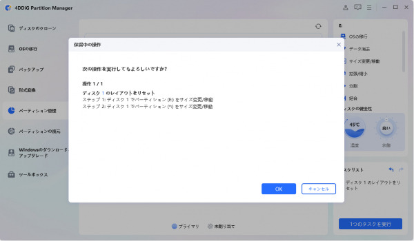 4DDiG Partition Manager は、パーティション管理に特化したツールで、HDD や SSD のパーティション容量を簡単かつ安全に調整できます。複雑な操作を行う必要がなく、初心者でも直感的にストレージの最適化を進められる点が特長です。