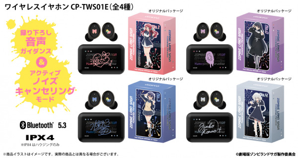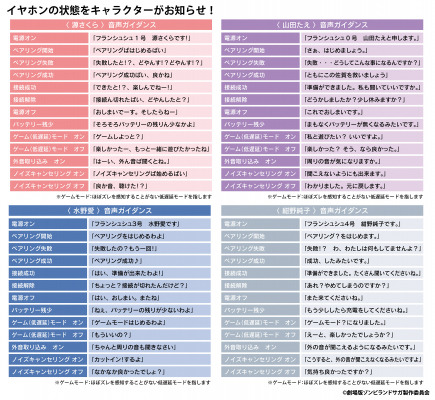 音声ガイダンスは「源さくら (CV:本渡 楓)」、「水野愛 (CV:種田梨沙)」、「紺野純子 (CV:河瀬茉希)」、「山田たえ(CV:三石琴乃)」の録り下ろしボイスを搭載。電源オンやオフ、ペアリング時やタップ音等、各モデル全13ワードの豪華内容となっております。