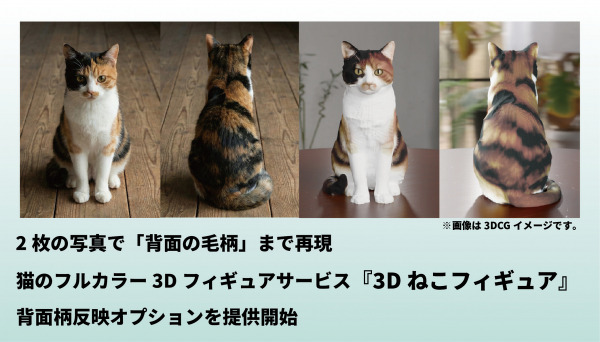 フルカラー3Dプリントサービスを手がける株式会社グラフィッククリエーション(所在地:長野県東御市、代表取締役会長 池田明)は、猫の写真からAI技術を活用してフルカラー3Dフィギュアを制作するサービス『3Dねこフィギュア』(https://www.gcc-3d.net/3d-neko-figure)において、2025年12月26日より、お客様から多くご要望をいただいていた「背面の毛柄・模様」を反映できる追加オプションの提供を開始します。