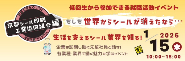 京都で学ぶ大学生等を対象に、企業訪問や社員との交流を通じて、各業種・業界で働く魅力を学ぶ「京都を支える1day 業界体験プログラム」のイベントを開催します!