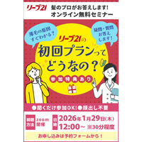 発毛専門リーブ21 (本社:大阪市中央区、代表取締役社長:岡村勝正)は、 1月29日(木)のランチタイムに無料…