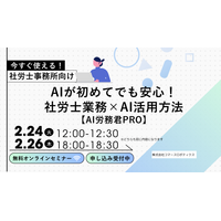 本日開催!【社労士限定】AIが初めてでも安心!社労士業務×AI活用方法 【AI労務君PRO】| 2/24(火)、2/26(木)開催