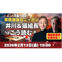 【2月13日(金)開催】自民316議席の歴史的圧勝、その“本質”を徹底解剖――井川意高×猫組長緊急参戦!衆院選2026特別トークライブ開催。メディアが報じない日本の行方を語り尽くす