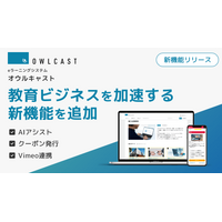 【eラーニング×AI】で教育の質向上・教育ビジネスを加速。eラーニングシステム「オウルキャスト」、AI分析で進捗確認・講座販売戦略立案を効率化。販促クーポン・Vimeo連携など、新機能を同時リリース。