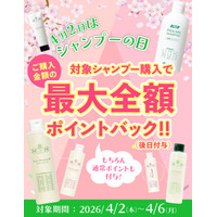 4月2日は「シャンプーの日」対象シャンプー購入で最大全額ポイントバック(4月2日~6日)