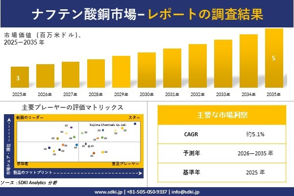 経営層の意思決定に役立つ戦略的洞察を得るため、ナフテン酸銅市場調査レポートの試読版をご請求ください: https://www.sdki.jp/trial-reading-request-55954