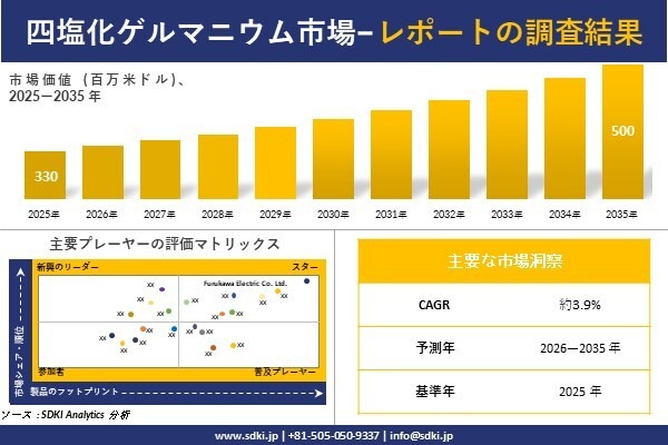 経営層の意思決定に役立つ戦略的洞察を得るため、四塩化ゲルマニウム市場調査レポートの試読版をご請求ください: https://www.sdki.jp/trial-reading-request-590642011