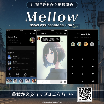 YouTube登録者120万人超えのボカロアーティスト「Mellow-禁断の果実Forbidden Fruit-」初のLINE着せかえがインクルーズの販売アカウントより配信開始!各楽曲のイラストをふんだんに使用したデザインとなっております。LINEを着せえて世界観をお楽しみください!