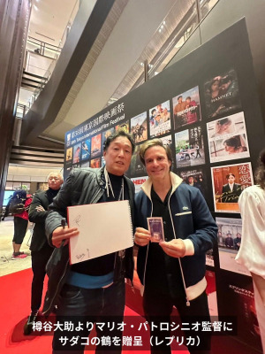映画・武道・車(ピースラリー)を通じた世界平和の道を模索する国際ジャーナリスト・樽谷大助が顧問を務める平和活動団体「サダコレガシー」は、第38回東京国際映画祭(TIFF)において、ポルトガルのマリオ・パトロシニオ監督へ「サダコの鶴」のレプリカを贈呈いたしました。