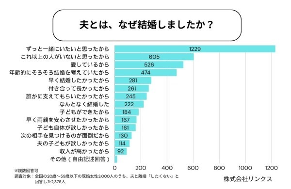 「夫と結婚した理由」を尋ねたところ、最多回答は…