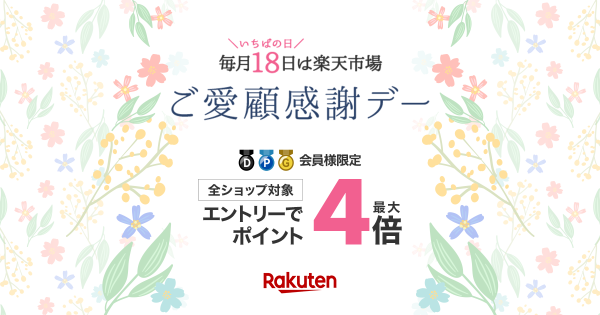 楽天市場のご愛顧感謝デーは、対象会員(ゴールド・プラチナ・ダイヤモンド)がエントリーのうえで買い物をすると、会員ランクに応じてポイント還元が最大4倍となるイベントです。