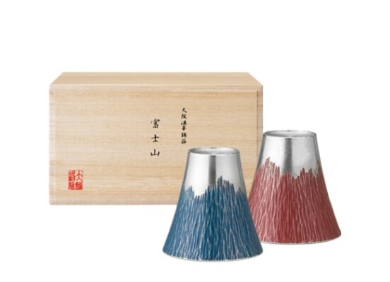 【大阪錫器】 錫製 富士山 タンブラー小 青朱ペア 180ml
