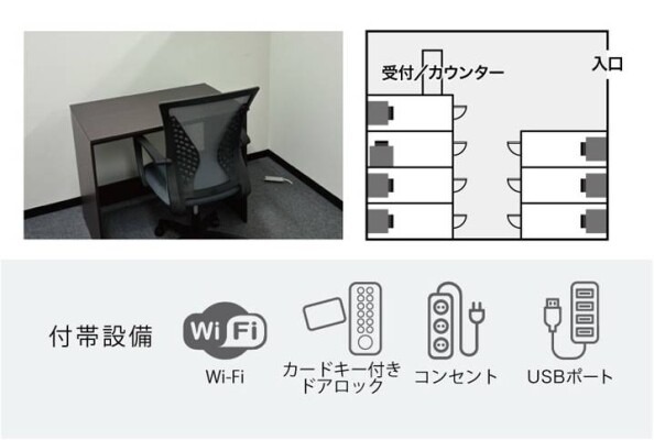 自宅ではなかなかお仕事に“締まり”のないという事業主の方に向けて、最小限でありながら最大限のパフォーマンスが実現できる約6m2のスペースを提供。さらに、ドアロックをはじめとするセキュリティはもちろんのことWi-Fi環境や電源も完備。