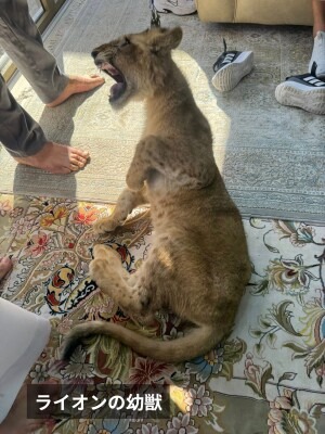 * 絨毯の上の猛獣: 本来「猛獣」と呼ばれる大型動物たちが、高級な絨毯の上でリラックスし、人間と触れ合う光景は、王族専用施設ならではの極めてレアな体験と言えます。