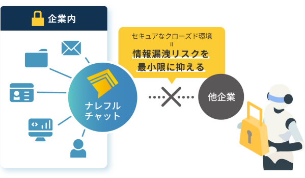 ナレフルチャットは、企業専用のクローズド環境でセキュアに利用できる対話型生成AIチャットツールです。従業員のAIリテラシー向上から、組織全体のナレッジ共有まで包括的にサポートし、企業の生成AI導入における悩みを解決いたします。