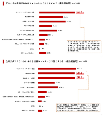 一方で、企業公式アカウントに求める情報では「新商品・セール情報(50.8%)」や「商品情報の詳細(50.4%)」の比率が高まっています。