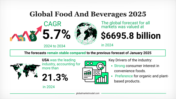 最新のグローバル・マーケット・モデル予測によると、世界の食品・飲料産業は、食習慣の変化、利便性を重視した製品需要の拡大、食品加工および保存分野における継続的な革新に支えられ、持続的な拡大を続けています。消費者が健康、柔軟性、機能性をますます重視する中で、製造業者は製品構成や供給網を調整し、変化する期待に対応しています。