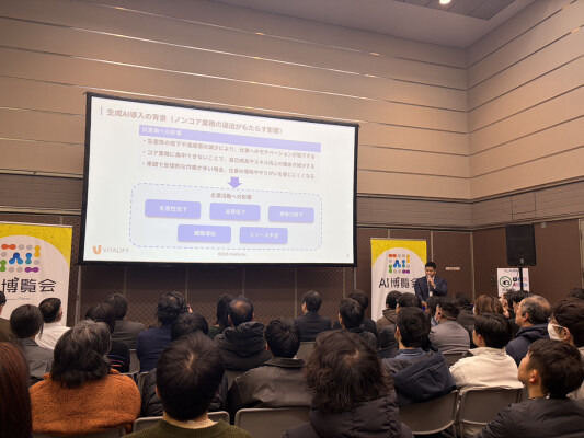 特に「Difyを導入しているが、うまく活用できていない・内製化まで至らない」というお客様の声に対し、バイタリフィ独自のノウハウに基づき、導入設計から運用支援、そして内製化までをサポートする伴走型サービスとしてご紹介いたしました。他社にはないきめ細やかな支援体制に、大きな注目が集まりました。