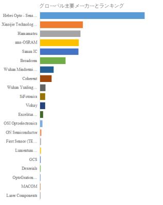 第13章では、光検出器チップ市場の主要メーカーについて、基本情報、製品仕様と用途、販売量、収益、価格設定、粗利益率、主力事業、最近の動向などの詳細情報を紹介します