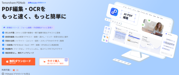 Tenorshare PDNobは、PDF編集に必要な基本機能を網羅した、Windows/Mac対応の買い切り型PDF編集ソフトです。