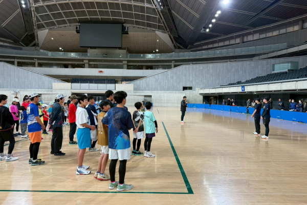 スキルアップセミナーは、明日香野のグループ会社である「ルーセント」が開催。ソフトテニス界の次代を担う若手育成を目的に、1月19日に東京体育館で行われる「ルーセントカップ 第66回 東京インドア 全日本ソフトテニス大会」のお楽しみ企画として実施されました。毎年好評を博しており、今回も70名の定員は募集開始からすぐに満員となり、小学生から高校生までの参加者が集まりました。