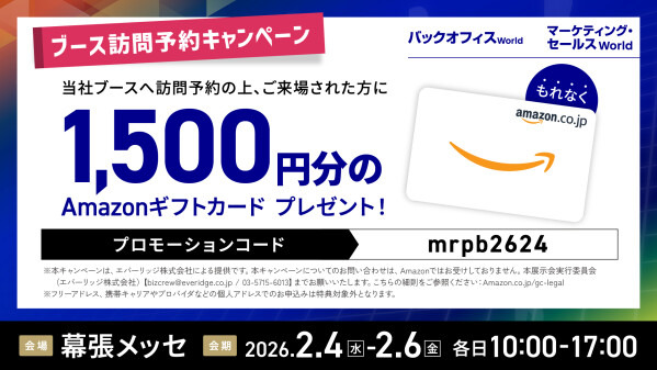 ブース予約でAmazonギフトカード1,500円分進呈!