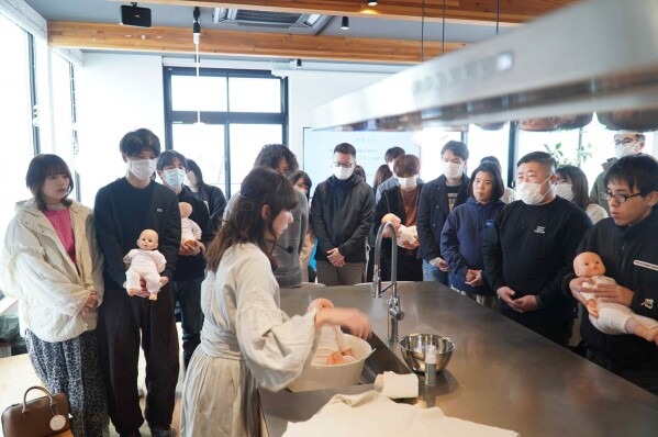 本講座では、親指と人差し指の腹で後頭部の「ぼんのくぼ」を支え、手のひら全体で首を支える方法を伝授。