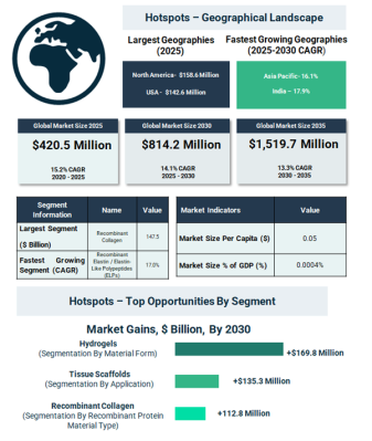 需要拡大の流れを取り込むため、ザ・ビジネス・リサーチ・カンパニーは、組換えタンパク質ベースバイオマテリアル事業者に対し、いくつかの中核能力の強化を推奨しています。その一つが、臨床グレードのバイオマテリアル開発を可能にする組換えコラーゲンプラットフォームの導入です。