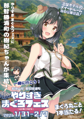 また、本フェスでは、那智勝浦温泉郷をPRするキャラクターである、温泉むすめ「樹紀(きき)ちゃん」と連携した企画も実施します。期間中は、「やりすぎまぐろフェス」とのコラボレーションを通じて、温泉と食の両面から那智勝浦町の魅力を発信します。町内を巡りながら、生まぐろと温泉という那智勝浦ならではの資源を併せて楽しんでいただくことで、滞在型観光の促進を図ります。