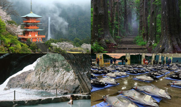 一方、勝浦港は黒潮の恵みを受ける日本一の「生まぐろ」の水揚げ基地として知られ、町では新鮮な生まぐろを使った料理が名物。漁港の朝市、まぐろ丼、希少部位を味わえる専門店など“食”の魅力も豊富です。また海沿いには自然湧出の温泉が点在し、海を眺めながら浸かる温泉体験は訪れた人を惹きつけます。